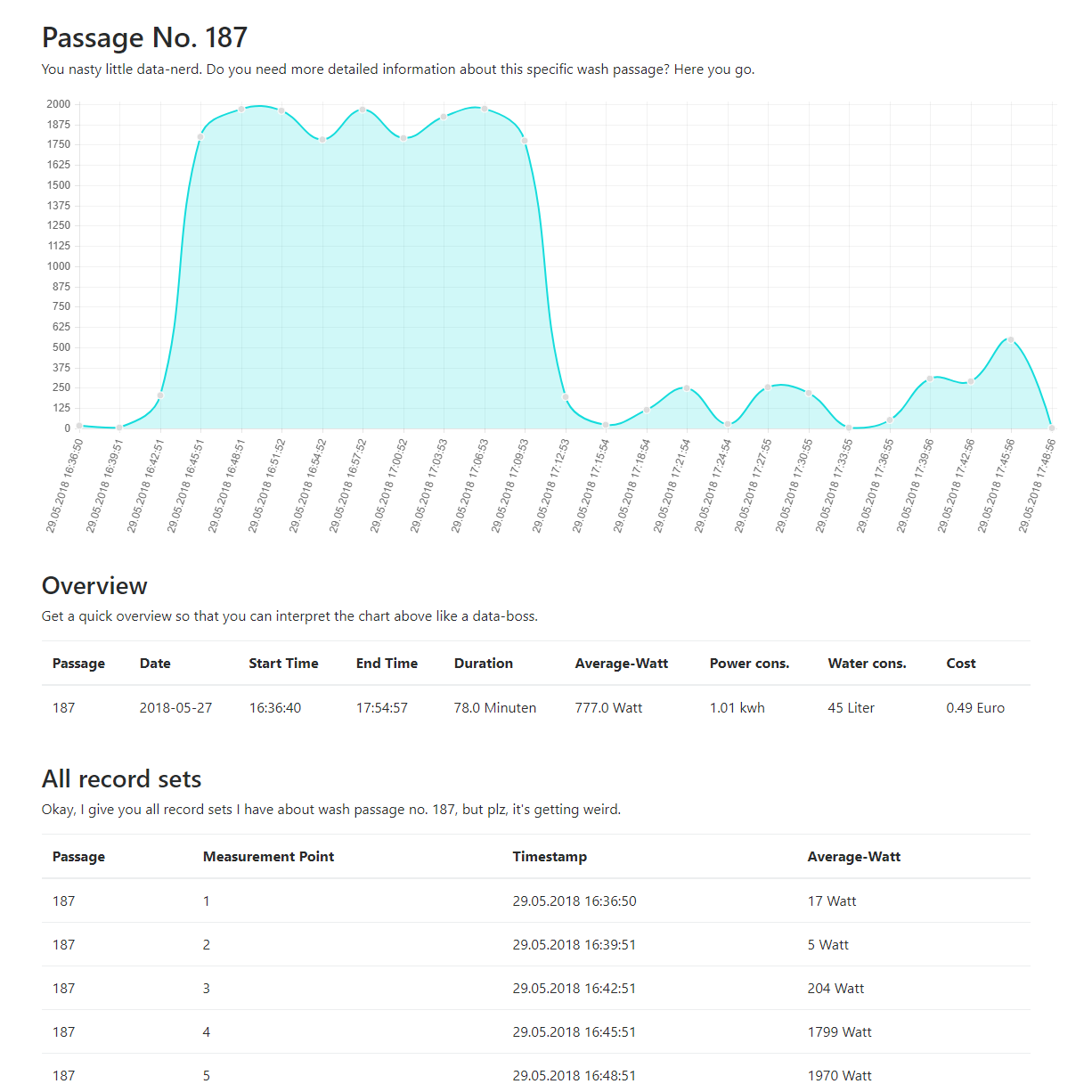 Back in my student days, I received an old washing machine – and instead of just doing laundry, I wanted to understand how it actually worked. So I built WashPi, a Python/Django application that connected to a wireless power socket, tracked the energy consumption, and visualized every single washing cycle.